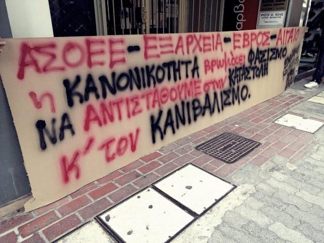 Παρέμβαση με αφορμή τα τελευταία γεγονότα στην ΑΣΟΕΕ, την έκρυθμη κατάσταση που επικρατεί στον Έβρο και την απαράδεκτη εικόνα ων ΜΑΤ στα νησιά του Β. Αιγαίου πραγματοποίησαν μέλη συλλογικότητας της Λάρισας στο πολιτικό γραφείο του βουλευτή της ΝΔ Χρ. Κέλλα, στο κέντρο της πόλης.