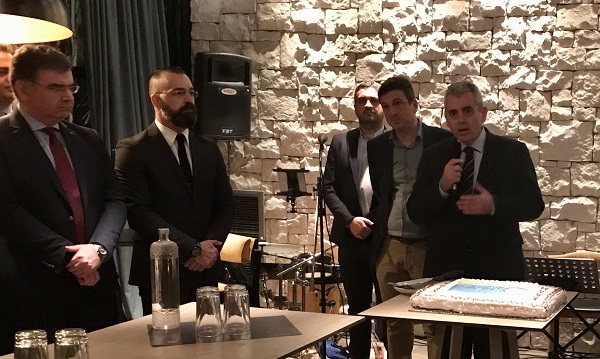 βουλευτής Λαρίσης της Νέας Δημοκρατίας, κ. Μάξιμος Χαρακόπουλος στον χαιρετισμό που κλήθηκε να απευθύνει από τον πρόεδρο της Ένωσης Αξιωματικών ΕΛ.ΑΣ. περιφέρειας Θεσσαλίας κ. Χρήστο Καλούσιο στην ετήσια εσπερίδα της Ένωσης και την κοπή της παραδοσιακής βασιλόπιτας, που ευλόγησε ο π. Βαρθολομαίος.