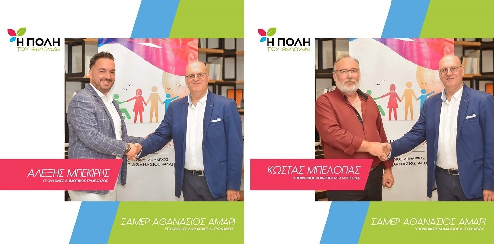 Με δύο υποψηφιότητες ξεκίνησαν οι παρουσιάσεις των μελών του συνδυασμού «Η Πόλη που Θέλουμε» με υποψήφιο δήμαρχο τον Σάμερ Αθανάσιο Αμάρι. Πρόκειται για τους Αλέξη Μπεκίρη, έναν νέο, με φρέσκιες ιδέες, όρεξη και αγάπη για τον τόπο του και τον Κώστα Μπελόγια, έναν άνθρωπο με εμπειρία στην τοπική αυτοδιοίκηση.