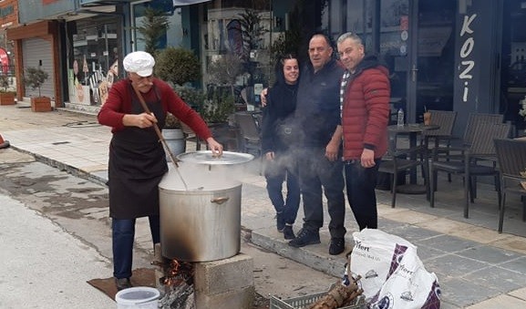 Τηρώντας τα έθιμα της Καθαρής Δευτέρας οι υπεύθυνοι του καφέ ουζερί “ΚΟΖΙ” στον Αμπελώνα, από νωρίς το πρωί σήμερα άναψαν τη φωτιά για να βράσει το καζάνι με τη φασολάδα ώστε να τη σερβίρουν το μεσημέρι μαζί με νηστίσιμα εδέσματα σε πελάτες και επισκέπτες, ως μια ευκαιρία διασκέδασης σε περιόδους όπως αυτή που ζούμε με απαγορεύσεις εκδηλώσεων λόγω κορωνοϊού, αλλά και μιας ζοφερής πραγματικότητας λόγω του πολέμου.