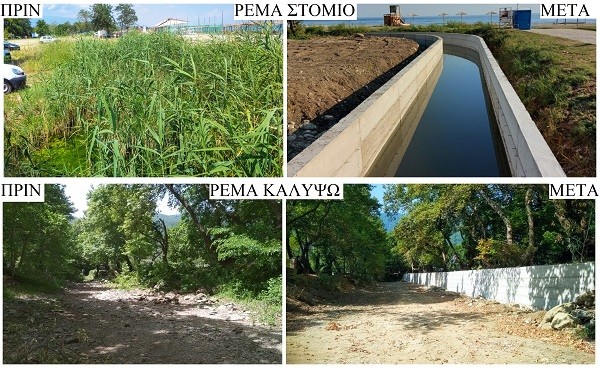 • Κατασκευή τοίχων αντιστήριξης πρανών (βόρια και νότια πλευρά), μήκους 105,00μ. και ύψους 2,50μ, καθώς και θεμελείωση πυθμένα ρέματος με σκυρόδεμα, μήκους 105,00μ. ρέμα «Κόκκινο Νερό»