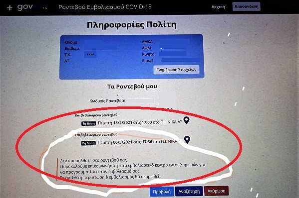 Πλήρης επιβεβαίωση για το ρεπορτάζ της σελίδας σχετικά με τα προβλήματα και τις ακυρώσεις εμβολιασμών που καταγράφηκαν από το απόγευμα της Τετάρτης στο Περιφερειακό Ιατρείο Νίκαιας ενώ δεν έλειψαν περιπτώσεις που σύμφωνα με πληροφορίες του paidis.com άνθρωποι όχι μόνο ενημερώθηκαν αορίστως για «τεχνητό πρόβλημα», μα δέχτηκαν και δεύτερη ψυχρολουσία, αφού μπαίνοντας στο σύστημα ενημερώθηκαν πως δεν εμφανίστηκαν στο ραντεβού και κινδυνεύουν να χάσουν τον εμβολιασμό!!!!