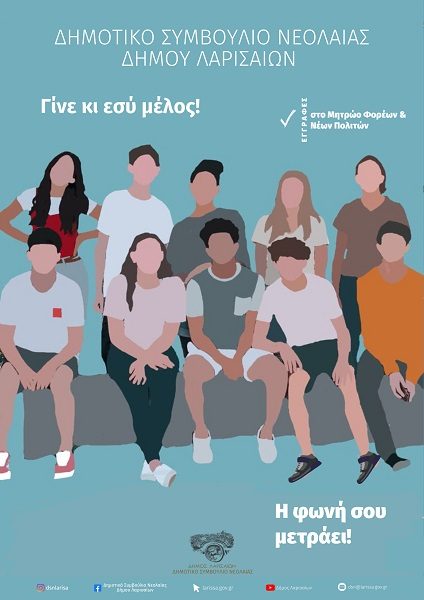 Σας υπενθυμίζουμε ότι το κάλεσμα για συμμετοχή στη νέα θητεία του Δημοτικού Συμβουλίου Νεολαίας που αφορά νέους/-ες και εκπροσώπους φορέων είναι ανοιχτό. Πιο συγκεκριμένα, η πρόσκληση αφορά νέους και νέες ηλικίας 17 έως 30 ετών, που κατοικούν στον Δήμο Λαρισαίων και ενδιαφέρονται να συμμετέχουν στις δημοκρατικές διαδικασίες ενός Δημοτικού Συμβουλίου Νεολαίας. Η εκπροσώπηση της νέας γενιάς, η συμμετοχή, η συζήτηση, η διαβούλευση, η υποβολή προτάσεων, η συνεργασία, οι νέες ιδέες, είναι οι βασικές αρχές που προωθούνται μέσω του Συμβουλίου.