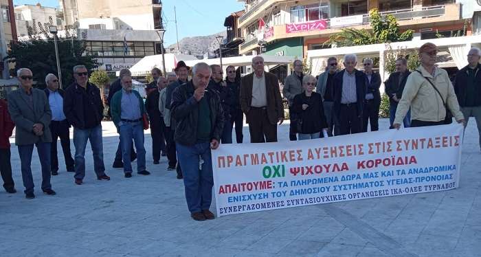 Το μήνυμα ότι θα συνεχίσουν τον αγώνα τους για να εξασφαλίσουν αξιοπρεπείς συντάξεις και για να διεκδικήσουν ουσιαστικά μέτρα καταπολέμησης της ακρίβειας και της ενεργειακής κρίσης εμφανίστηκαν σήμερα οι συνταξιούχοι του Τυρνάβου που συμμετείχαν στη συγκέντρωση που συνδιοργάνωσαν οι συνταξιουχικές οργανώσεις ΙΚΑ και ΟΑΕΕ του δήμου.