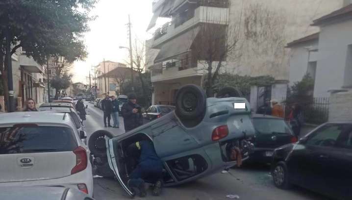 Ασυνήθιστο τροχαίο ατύχημα με υλικές ζημιές σημειώθηκε σήμερα το απόγευμα λίγο μετά τις 17.00 στη διασταύρωση των οδών Υψηλάντου και Τσιμισκή στη Λάρισα όταν ο 45χρονος οδηγός ενός αυτοκίνητο κάτω από αδιευκρίνιστες συνθήκες έχασε τον έλεγχο του οχήματος με αποτέλεσμα αυτό να ανατραπεί.
