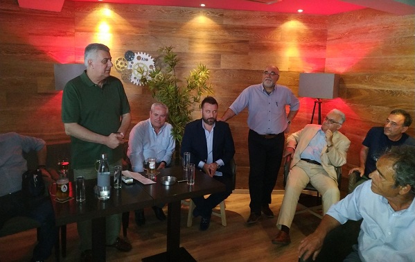 Ο στενός πλέον συνεργάτης του προέδρου του κόμματος υποδέχθηκε τον βουλευτή κ. Αντώνη Μυλωνάκη , τον Διευθυντή της Κοινοβουλευτικής Ομάδας κ. Βασίλη Γραμμένο , τον Διευθυντή του κόμματος κ. Ευάγγελο Φανίδη, τον πρ. βουλευτή κ. Παύλο Μαρκάκη Παύλο και τον πολιτευτή κ. Δαμιανό Ζιώκα, ενώ στο γνωστό καφέ υπήρχαν εκπρόσωποι φορέων και φίλοι του κόμματος που αντάλλαξαν απόψεις υποβάλλοντας παράλληλα και αιτήματα εκπροσωπώντας επιμέρους κλάδους.