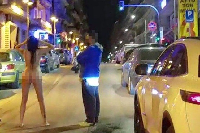 Μία ολόγυμνη γυναίκα στη μέση της οδού Κασσάνδρου αντίκρισαν οδηγοί και περίοικοι το βράδυ του Σαββάτου στη Θεσσαλονίκη. Προς έκπληξη όλων η γυναίκα βρισκόταν στη μέση του δρόμου, χωρίς να φορά ρούχα.