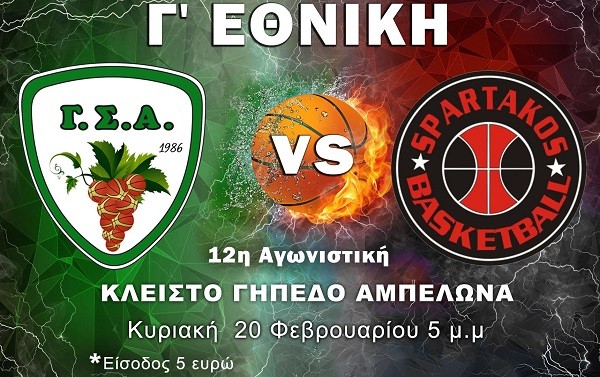 Έναν συναρπαστικό αγώνα μπάσκετ θα έχουν την ευκαιρία να παρακολουθήσουν οι φίλαθλοι του Γ.Σ.Αμπελώνα και όχι μόνο, το απόγευμα της Κυριακής στον Αμπελώνα, καθώς η τοπική ομάδα και 4η στην βαθμολογία, θα αντιμετωπίσει την 1η και αήττητη ομάδα του Πρωταθλήματος, τον Σπάρτακο Ιωαννίνων, στο πλαίσιο της 12ης αγωνιστικής του 4ου Ομίλου της Γ’ Εθνικής κατηγορίας.