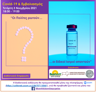 ΔΙΑΔΙΚΤΥΑΚΗ ΔΡΑΣΗ ΜΕ ΘΕΜΑ «COVID-19 & ΕΜΒΟΛΙΑΣΜΟΣ – ΟΙ ΠΟΛΙΤΕΣ ΡΩΤΟΥΝ, ΟΙ ΕΙΔΙΚΟΙ ΙΑΤΡΟΙ ΑΠΑΝΤΟΥΝ»