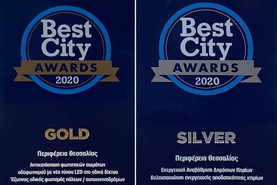 ΔΙΠΛΗ ΒΡΑΒΕΥΣΗ ΓΙΑ ΤΗΝ ΠΕΡΙΦΕΡΕΙΑ ΘΕΣΣΑΛΙΑΣ ΣΤΑ BEST CITY AWARDS 2020