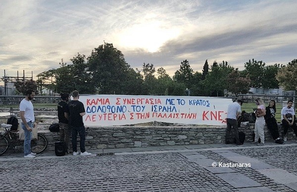 «Με πρωτοβουλίες και παρεμβάσεις τους, Οργανώσεις της ΚΝΕ ΘΕΣΣΑΛΙΑΣ εκφράζουν την αλληλεγγύη τους στον λαό της Παλαιστίνης καταδικάζοντας τη δολοφονική πολιτική του Ισραήλ, με τις πλάτες ΗΠΑ – ΝΑΤΟ – ΕΕ.