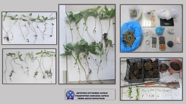 Ειδικότερα, μετά από κατάλληλη αξιοποίηση στοιχείων για καλλιέργεια δενδρυλλίων κάνναβης και διακίνηση ποσοτήτων κάνναβης από τους δράστες, διενεργήθηκαν νομότυπες έρευνες σε τρεις οικίες τους σε διάφορες περιοχές του δήμου Αγιάς, κατά τις οποίες βρέθηκαν συνολικά και κατασχέθηκαν: