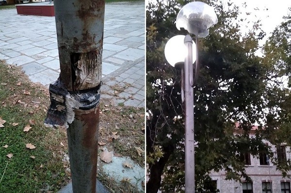 “Οι φωτογραφίες που στέλνω δείχνουν την κατάσταση που επικρατεί απέναντι από το Δημαρχείο σε μέρος όπου συχνάζουν και παίζουν κυρίως παιδιά. Άκρως επικίνδυνο!! Ελπίζω σε μια δημόσια ανάρτηση σας μήπως και συγκινηθούν, ΑΝ συγκινηθούν!!! οι αρμόδιοι φορείς μας!”, σημειώνει η αναγνώστρια που δείχνει τη σπασμένη λάμπα, αλλά και το ανοικτό καπάκι στο στύλο.
