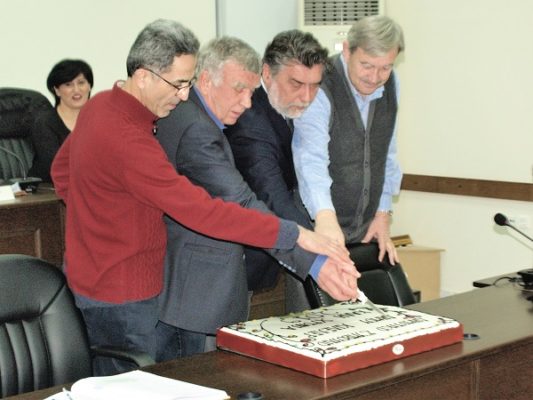 δημοτικούς συμβούλους καλή χρονιά με υγεία, αισιοδοξία και στις συνεδριάσεις του δημοτικού συμβουλίου να πρυτανεύει η συναίνεση. Το φλουρί της πίτας έπεσε στον αντιδήμαρχο Πολιτισμού Α. Χατζούλη, ο οποίος παρέλαβε το δώρο που αντιστοιχούσε σε ένα βιβλίο από τον πρόεδρος του ΔΣ Αχ. Βαρδακούλη.