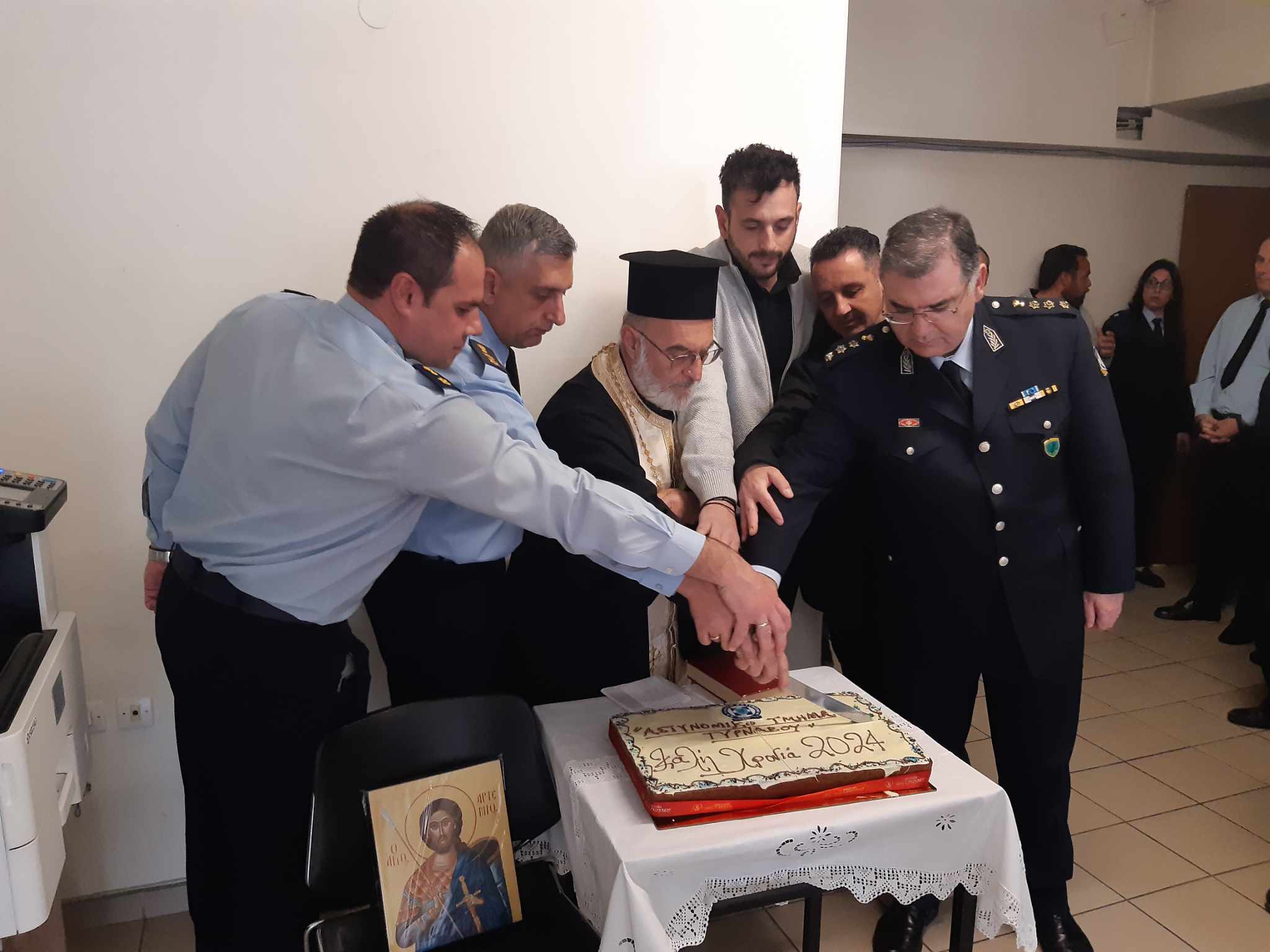 Την πίτα ευλόγησε ο αρχιερατικός επίτροπος Τυρνάβου π. Γεώργιος Παπαγιάννης, ο οποίος μετέφερε στους αστυνομικούς τις ευχές του Μητροπολίτη Λάρισας και Τυρνάβου κ. Ιερώνυμου.