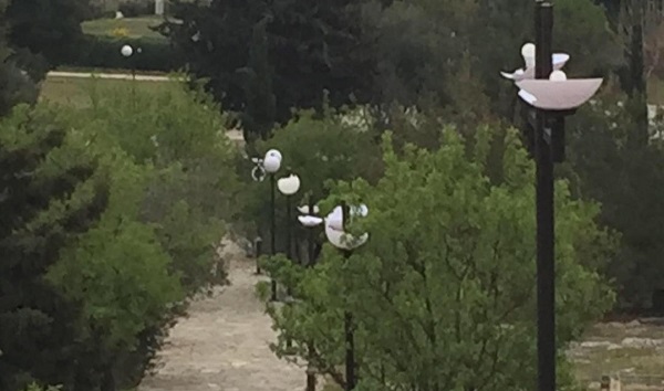 Με λύπη μας διαπιστώσαμε εκτεταμένες φθορές σε φωτιστικά σώματα στο Άλσος του Προφήτη Ηλία στον Τύρναβο.
