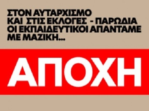 Καλούμε λοιπόν κάθε συνάδελφο να μην νομιμοποιήσει με την συμμετοχή του την διενέργεια νόθων εκλογικών διαδικασιών και να απομονώσει τις ελάχιστες θλιβερές φωνές , όπως αυτή της ΑΔΗΚ στο νομό μας, που τάσσονται με την πλευρά του υπουργείου !
