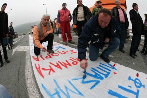 Ετσι ενόψει της σημερινής κινητοποίησης με τρακτέρ στον Πλατύκαμπο ο φακός συνέλαβε τον κ. Τσιτσιρίγγο με το πινέλο στο χέρι να βάζει μαζί με τον Χρ. Σιδερόπουλο τις τελευταίες πινελιές σε ένα από τα πανό που θα αναρτήσουν οι αγρότες στο χώρο της κινητοποίησης.