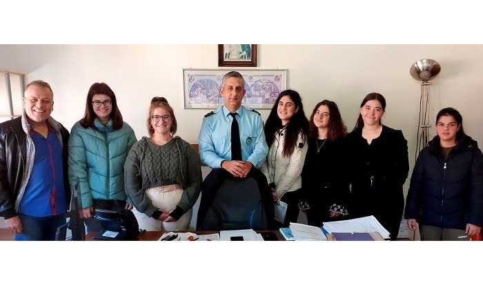 Μαθήτριες του ΕΠΑΛ Τυρνάβου επισκέφθηκαν πρόσφατα τον διοικητή του Αστυνομικού Τμήματος Τυρνάβου, κ Σεραφείμ Μπίρδα, στο πλαίσιο της εκδήλωσης που ετοιμάζει το Κέντρο Κοινότητας για την Ημέρα για το Αλκοόλ, στις 8 Δεκεμβρίου, στο κινηματοθέατρο Μαξίμ.