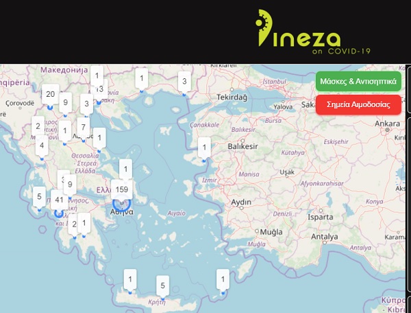 Η προσπάθειά τους συνεχίστηκε με το να συλλέγουν και να καταγράφουν στον χάρτη τους τα αποθέματα μασκών και αντισηπτικών ενώ τώρα ο χάρτης της Pineza δείχνει σε ζωντανή μετάδοση τα διαθέσιμα σημεία αιμοδοσίας την περίοδο του κορονοϊού.