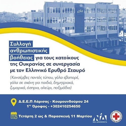 Η ΔΗΜΤΕ ΤΥΡΝΑΒΟΥ ΤΗΣ ΝΔ ΣΥΓΚΕΝΤΡΩΝΕΙ ΒΟΗΘΕΙΑ ΓΙΑ ΤΟΝ ΛΑΟ ΤΗΣ ΟΥΚΡΑΝΙΑΣ