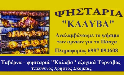 Στις ημέρες του κορωνοϊού και των απαγορεύσεων ενόψει Πάσχα η ταβέρνα – ψησταριά “Η καλύβα” στα εξοχικά του Τυρνάβου αναλαμβάνει να ψήσει για εσάς το πασχαλινό αρνί ή κατσίκι και να σας το παραδώσει για την ημέρα του Πάσχα.
