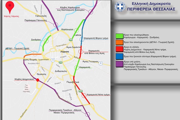 Με ένα ευρύ στοχευμένο πρόγραμμα μεγάλων οδικών παρεμβάσεων, που αλλάζουν τα κυκλοφοριακά δεδομένα στη Λάρισα και αυξάνουν την οδική ασφάλεια, η Περιφέρεια Θεσσαλίας δίνει λύση στην διέλευση των διερχόμενων οχημάτων και αποσυμφορεί τις κεντρικές αρτηρίες της πόλης.