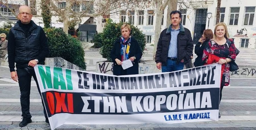 «Ως ΕΛΜΕ ν. Λάρισας συμμετέχουμε στην απεργία της ΑΔΕΔΥ , για να απαιτήσουμε αυτά που δικαιωματικά μας ανήκουν. Μετά την οικονομική εξαθλίωση που υποστήκαμε στα χρόνια των μνημονίων και την περικοπή των απολαβών μας πάνω από 40%, λάβαμε πριν λίγο καιρό αυξήσεις-κοροϊδία περίπου 1%.
