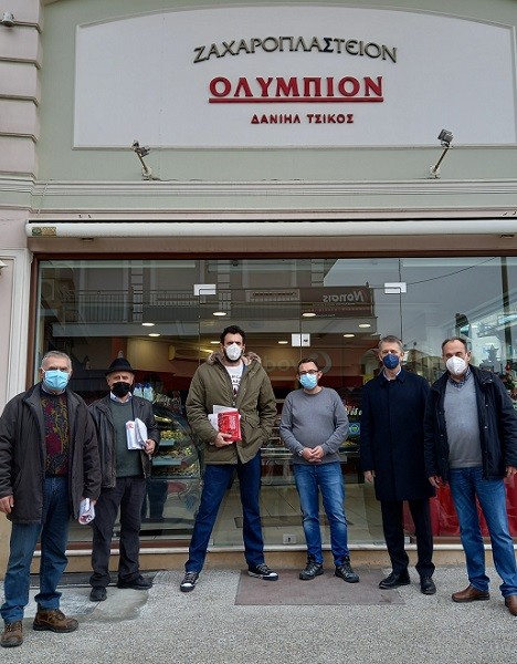 Αντιπροσωπεία εκλεγμένων του ΚΚΕ με τη Λαϊκή Συσπείρωση, αποτελούμενη από τους Τάσο Τσιαπλέ, περιφερειακό σύμβουλο, μέλος της Ε.Π Θεσσαλίας, Στέλιο Χατζηκράχτη, δημοτικό σύμβουλο Τυρνάβου, Μπαντόγια Νίκο, δημοτικό σύμβουλο Τυρνάβου, Τσικριτσή Στέλιο, δημοτικό σύμβουλο Τυρνάβου και Τέλη Μίαρη, γραμματέα της ΚΟΒ Τυρνάβου του ΚΚΕ, πραγματοποίησε σήμερα 29/12/21, περιοδεία στα καταστήματα του κέντρου του Τυρνάβου, ενημερώνοντας τους αυτοαπασχολούμενους εμπόρους και επαγγελματίες για τις θέσεις του ΚΚΕ.