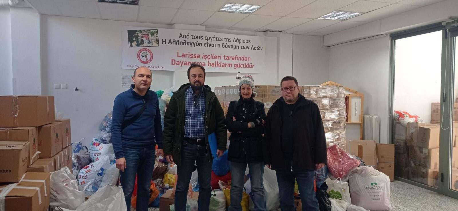 Εν προκειμένω, η ανταπόκριση από τους δασκάλους, τους γονείς και τους μαθητές των σχολείων μας υπήρξε πολλή μεγάλη. Η συγκέντρωση των ειδών πρώτης ανάγκης πραγματοποιήθηκε στους χώρους των τεσσάρων σχολείων και, στη συνέχεια, αντιπροσωπεία των Συλλόγων Γονέων και Κηδεμόνων παρέδωσε το υλικό στο Εργατικό Κέντρο Λάρισας, παρουσία του προέδρου του κ. Σκόκα Γιάννη. Τα μέλη του εργατικού κέντρου Λάρισας βοήθησαν πρακτικά και με υποδειγματική οργάνωση στην ταξινόμηση του υλικού και δρομολόγησαν την αποστολή του στον προορισμό του.