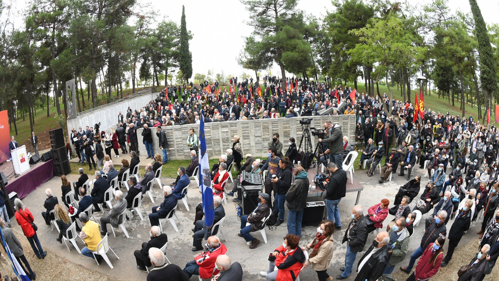 Στην τελετή που διοργανώθηκε από το ΚΚΕ παρέστη ο γ.γ. του κόμματος Δημήτρης Κουτσούμπας ο οποίος τόνισε ότι «με τα μνημεία των ηρώων, αλλά και τα μουσεία που κρατούν ζωντανή την ιστορική μνήμη, με τις εκδηλώσεις στους τόπους θυσίας σε όλη την Ελλάδα τιμάμε όλους τους επώνυμους και ανώνυμους ήρωες που έπεσαν στα πεδία των μαχών, που εκτελέστηκαν, βασανίστηκαν, εξορίστηκαν, κατέθεσαν ολόκληρη τη ζωή τους στον αγώνα για να ξημερώσει ένα καλύτερο μέλλον για τις νέες γενιές», εκφράζοντας τη βεβαιότητα του Κόμματος, ότι «οι “μέρες του θερισμού” που προσδοκούμε όλοι και όλες εμείς, η σημερινή νέα γενιά, “θα ‘ρθουν”».