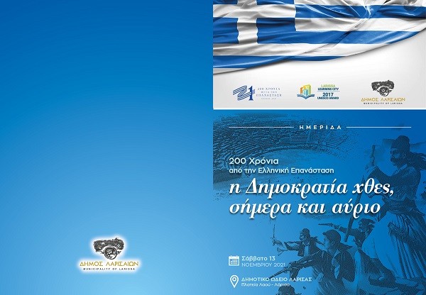 “200 Χρόνια από την Ελληνική Επανάσταση: η Δημοκρατία χθες, σήμερα και αύριο”, είναι ο τίτλος της ιδιαίτερα σημαντικής εκδήλωσης που διοργανώνει ο Δήμος Λαρισαίων, και τελεί υπό την αιγίδα της επιτροπής Ελλάδα 2021. Η εκδήλωση θα πραγματοποιηθεί το Σάββατο 13 Νοεμβρίου, στο Δημοτικό Ωδείο της Λάρισας με όλα τα προβλεπόμενα μέτρα προστασίας από τον κορωνοϊό.