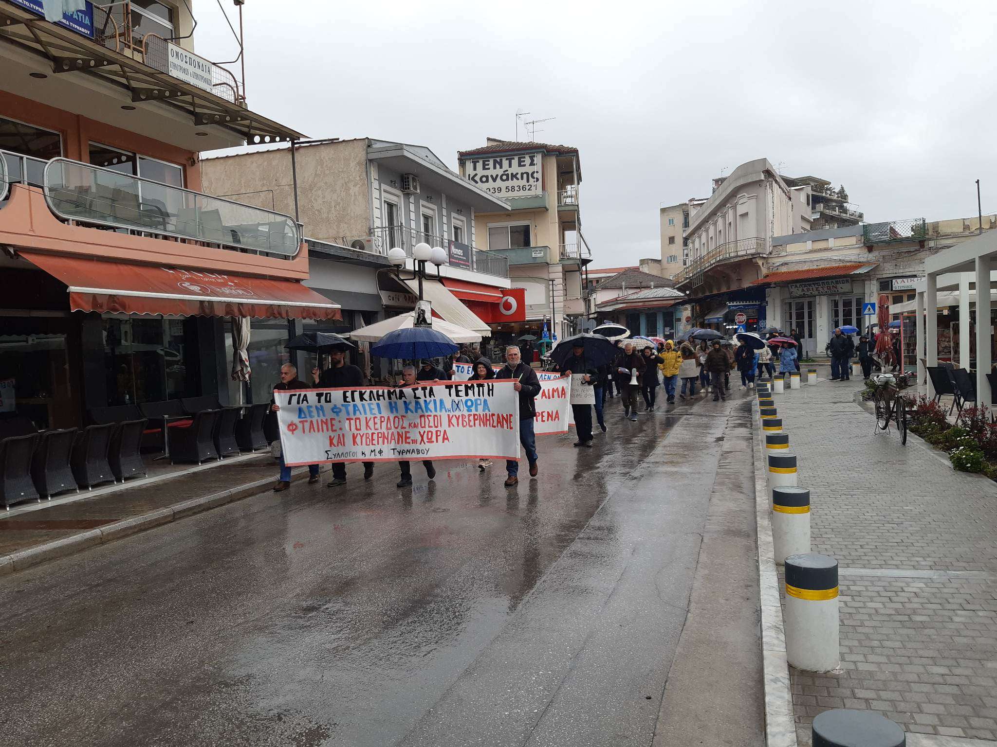 ΜΕΓΑΛΗ ΣΥΓΚΕΝΤΡΩΣΗ ΚΑΙ ΠΟΡΕΙΑ ΣΤΟΝ ΤΥΡΝΑΒΟ ΠΑΡΑ ΤΗ ΒΡΟΧΗ