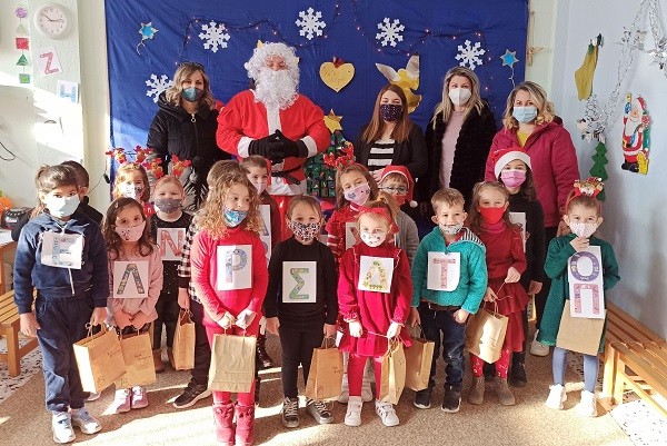 Μέσα σε μια όμορφη εορταστική ατμόσφαιρα πραγματοποίησαν την καθιερωμένη χριστουγεννιάτικη γιορτή, το κάθε Νηπιαγωγείο στην τάξη του, στέλνοντας 24 μηνύματα χαράς και αδελφοσύνης με την «Αλφαβήτα των Χριστουγέννων». Με το πέρας της γιορτής όμως μια έκπληξη περίμενε τα μικρά παιδιά, καθώς εντελώς απροειδοποίητα, δέχθηκαν την επίσκεψη του Άη Βασίλη. Ο Άγιος απαντώντας στην πρόσκληση του Δ.Σ. του Συλλόγου Γονέων και Κηδεμόνων, «εισέβαλε» χαρούμενα στα νηπιαγωγεία μοιράζοντας γέλια, ξεφωνητά και δώρα.