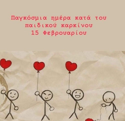 Η 15η Φεβρουαρίου είναι αφιερωμένη στους πραγματικούς ήρωες της ζωής. Στα παιδιά τα οποία αντί να απολαμβάνουν ανέμελα το παιχνίδι δίνουν καθημερινά έναν τιτάνιο αγώνα μαχόμενα για την ίδια τους τη ζωή. Η πολιτεία και όλοι οι αρμόδιοι φορείς οφείλουμε να πράξουμε τα δέοντα για να στηρίξουμε τα παιδιά αυτά.