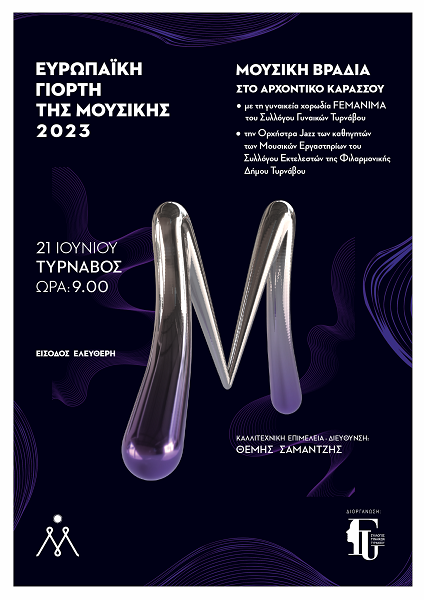 Ο Σύλλογος Γυναικών Τυρνάβου, ετοίμασε για την Ευρωπαϊκή γιορτή μουσικής, εκδήλωση στο Αρχοντικό Καράσσου, την Τετάρτη 21 Ιουνίου.
