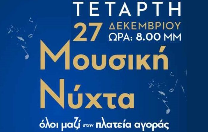 Πρόκειται για την εκδήλωση που θα πραγματοποιηθεί σήμερα στις 8.00 μ.μ. στην πλατεία Αγοράς της πόλης και στην οποία θα εμφανιστούν οι μουσικοί: