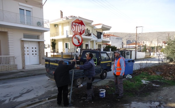 Από την πόλη του Τυρνάβου ξεκίνησε το συνεργείο του Δήμου να τοποθετεί καινούργια σήματα στους δρόμους.