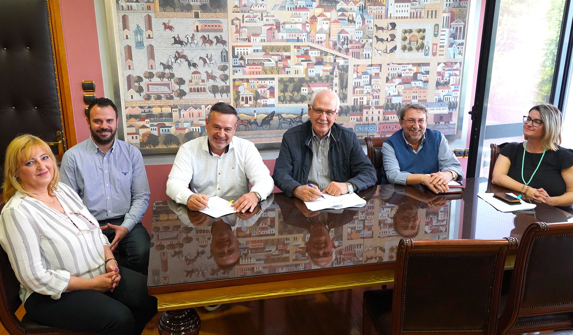 Παρόντες στην υπογραφή της σύμβασης ήταν οι αντιδήμαρχοι Γ. Σούλτης και Θ. Αδαμόπουλος και υπηρεσιακά στελέχη της Διεύθυνσης Τεχνικών Υπηρεσιών του Δήμου Λαρισαίων.