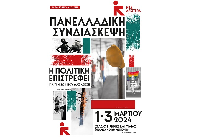 Με το σύνθημα «Η πολιτική επιστρέφει! Με τη Νέα Αριστερά για τη ζωή που μας αξίζει!» η Νέα Αριστερά ξεκινά τις τριήμερες εργασίες της Ιδρυτικής Πανελλαδικής της Συνδιάσκεψη την Παρασκευή 1η Μαρτίου 2024 στο Στάδιο Ειρήνης και Φιλίας (ΣΕΦ) στο συνεδριακό χώρο Μελίνα Μερκούρη.