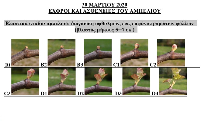 Κείμενο οδηγιών φυτοπροστασίας της αμπελοκαλλιέργειες από εχθρούς και ασθένειες στα σημερινά βλαστικά στάδια του αμπελιού που είναι: διόγκωση οφθαλμών, έως εμφάνιση πρώτων φύλλων (βλαστός μήκους 5─7 εκ.) εξέδωσε ο Οινοποιητικός Συνεταιρισμός Τυρνάβου.