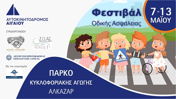Η Αυτοκινητόδρομος Αιγαίου, με την ευκαιρία συμπλήρωσης πέντε χρόνων από την παράδοση του νέου αυτοκινητόδρομου, διοργανώνει το Φεστιβάλ Οδικής Ασφάλειας στο Πάρκο Κυκλοφοριακής Αγωγής του Δήμου Λαρισαίων, από τις 7 έως τις 13 Μαΐου 2022.