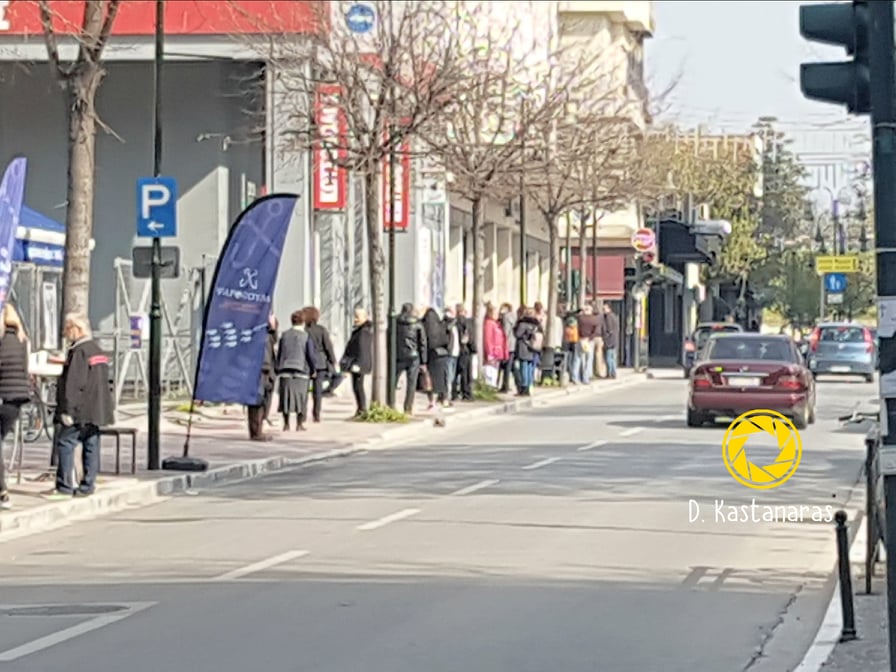 Από τη μία λοιπόν, εδώ αποσιωπάται για ακόμη μια φορά το γεγονός ότι ο τηλεφακός συμπιέζει τις αποστάσεις, σε ό,τι αφορά την απεικόνιση των αγοραστών. Κάτι ανάλογο αν θυμάστε έγινε και με τις εικόνες του πρώτου lockdown, πριν το καλοκαίρι, με τους περιπάτους στη νέα παραλία της Θεσσαλονίκης.