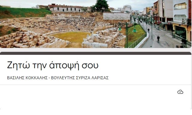 Συνεχίζοντας την πρωτότυπη μέθοδο επικοινωνίας με τους πολίτες, που εγκαινίασε πριν από περίπου τρεις μήνες, ο βουλευτής ΣΥΡΙΖΑ-ΠΣ Λάρισας, Βασίλης Κόκκαλης ανήρτησε σήμερα στον λογαριασμό του στο Facebook νέο ερωτηματολόγιο προκειμένου να καταγράψει τις απόψεις, τα σχόλια και τις προτάσεις των Λαρισαίων για 3 κρίσιμα θέματα της καθημερινότητάς τους, όπως η πορεία υλοποίησης των αντιπλημμυρικών έργων στην περιοχή μας, ο κατώτατος μισθός και η αύξηση του ενεργειακού κόστους.