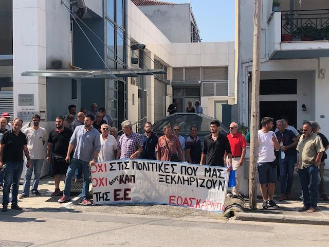 Περίσσευε η αγανάκτηση το πρωί της Τετάρτης στα γραφεία του ΕΛΓΑ Λάρισας, όπου, μετά από απόφαση της Πανελλαδικής Επιτροπής Μπλόκων για πανελλαδική ημέρα κινητοποίησης ενάντια στο σημερινό ΕΛΓΑ και τις πρακτικές του, πραγματοποιήθηκε Πανθεσσαλική κινητοποίηση.
