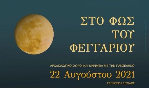 Η Εφορεία Αρχαιοτήτων Λάρισας συμμετέχει και φέτος στις εκδηλώσεις του Υπουργείου Πολιτισμού και Αθλητισμού για την Πανσέληνο, την προσεχή Κυριακή 22 Αυγούστου. Στο πλαίσιο του εορτασμού το Διαχρονικό Μουσείο θα είναι ανοιχτό για το κοινό με ελεύθερη είσοδο ως τα μεσάνυχτα. Οι φίλοι μας θα έχουν έτσι την ευκαιρία να περιηγηθούν στη συλλογή του Μουσείου και στη συνέχεια, στον κήπο του, να απολαύσουν την υπέροχη καλοκαιρινή βραδιά κάτω από το φως του φεγγαριού.