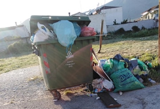 Δεν είναι δυνατόν με τη συχνότητα αποκομιδής των απορριμμάτων στον Τύρναβο να διαθέτει ο δήμος μόνο έναν κάδο για 30 και πλέον οικογένειες στη γειτονιά μας, επισημαίνει ο αναγνώστης που συνοδεύει τα παράπονά του και με τη σχετική φωτογραφία που αναδεικνύει το μέγεθος του προβλήματος.