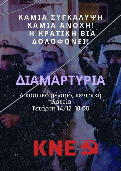 Παρέμβαση της ΚΝΕ ενάντια στη βία του συστήματος και την κρατική καταστολή, με αφορμή τον θάνατο του 16χρονου Κώστα Φραγκούλη από τα πυρά αστυνομικού.