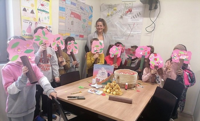 Η συγγραφέας παρουσίασε το τελευταίο βιβλίο της “Η ώρα του ουρανού πήγε ροζ με πορτοκαλί” στα παιδιά της Β’ τάξης του Δημοτικού Σχολείου της Νίκαιας. Με κεντρικό στόχο την ανάπτυξη της φιλαναγνωσίας και την επαφή των παιδιών με τα βιβλία πραγματοποίησε, με τη βοήθεια των εθελοντριών της βιβλιοθήκης, δράσεις και παιχνίδια βασισμένα στο βιβλίο της που κυκλοφόρησε πρόσφατα από τις εκδόσεις Πατάκη.