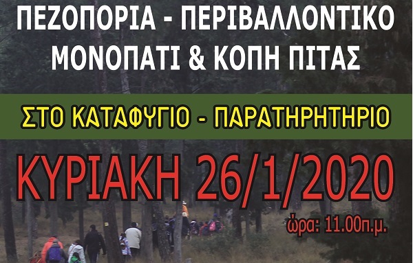 Εδώ και τόσα…χρόνια ο Εξωραϊστικός Σύλλογος Τσαριτσάνης συνεχίζει την παράδοση, για την κοπή πίτας, με πεζοπορία και το συνταίριασμα χαράς και ανάτασης ψυχής με τη γνώση, στο βουνό και το δάσος Τσαριτσάνης, στους πρόποδες του μυθικού Ολύμπου και φέτος,την Κυριακή 26 του Γενάρη.